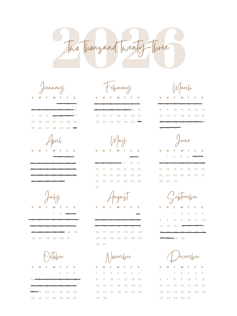 Please find below our current booking calendar for 2026.